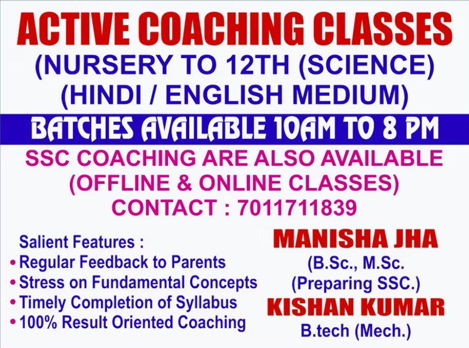 Active Coaching Classes in Qutub Vihar Phase 2, Delhi is a renowned educational institution that has been offering high-quality coaching services for many years. Specializing in Tutorials and a wide range of academic and competitive exam preparations, the institute has become a trusted destination for students looking to achieve academic success. The institute’s courses are designed by expert faculty members who bring a wealth of knowledge and experience to help students excel in their studies.
